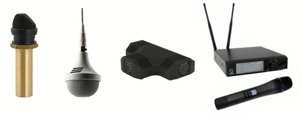 microfoni controllabili, radiomicrofoni, audioguide e mixer automatici.